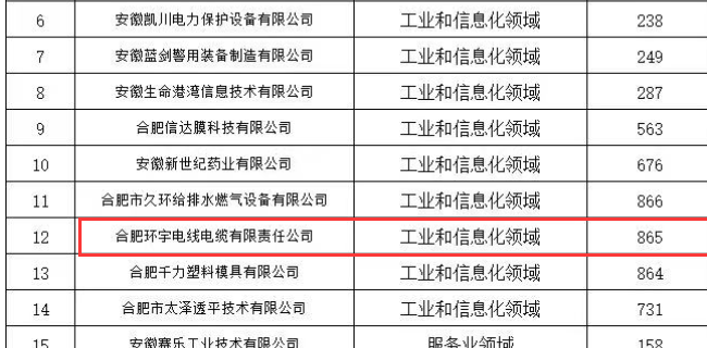 近日,安徽省經濟和信息化廳發布了 2023年安徽省“專精特新”企業名單,合肥環宇電線電纜成功入選,認證編號865.